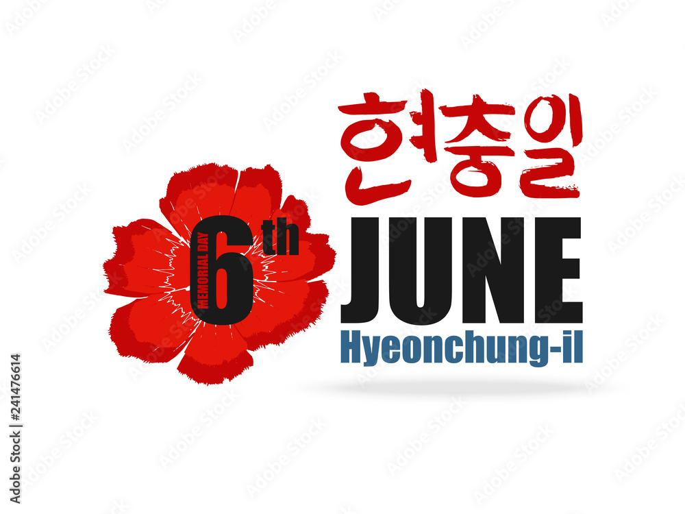 Korean Text Translate Memorial Day 6 June Hyeonchungil Hand Drawn Font With Red Flower Card In National Colors Of Flag South Korea Vector Hangul Calligraphy Stock Vector Adobe Stock